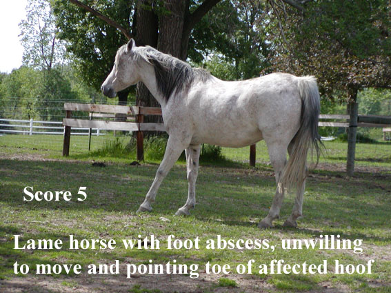Note how it is leaning back, taking more weight on the hind quarters than normal. As a consequence the hind legs are slightly more forward, under the body. Ponies with laminitis tend to show more exaggerated examples of these postures.