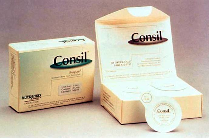 Osseopromotive materials are used such as BoneGlass® (Consil: