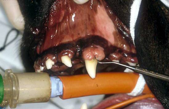 inflammatory response to plaque. Some breeds such as Boxers, Setters,