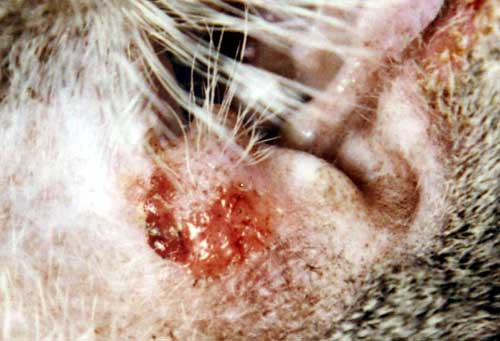 lesion with e.g. the tip of a needle or scalpel blade, or