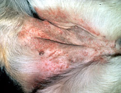 Canine ventral pyoderma in a German Shepherd dog secondary