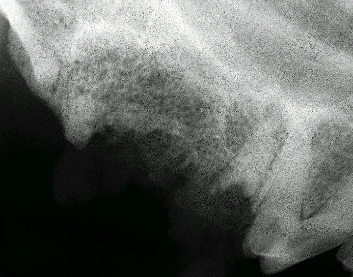 Retained root tip from extracted upper premolar 4